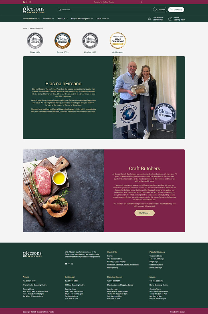 Overall, the e-commerce solution developed by Intrade supports the family-run butchers across all four locations, with a strong emphasis on local pickup, flexible delivery options, and a fast, professional, and user-friendly experience. The ongoing support ensures that the website continues to serve the needs of the business and its customers for years to come.